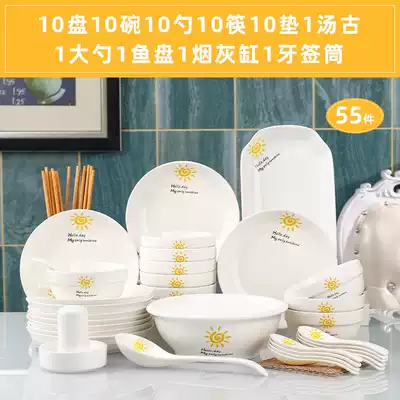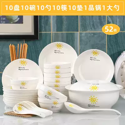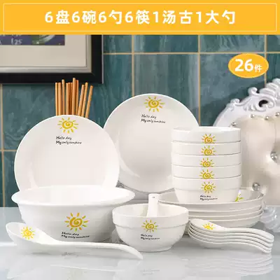 Small Sun 18 heads with noodle bowl Small Sun 18 heads with Tanggu Small Sun 6 plates 6 bowls 6 spoons 6 chopsticks 1 Tanggu 1 spoon Small Sun 6 plates 6 bowls 6 spoons 6 chopsticks 2 noodle bowl Small Sun 10 plates