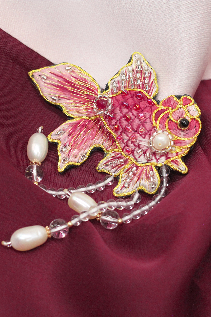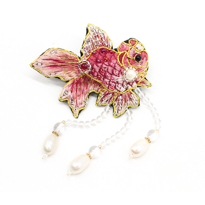 Yembroidered Collection Xiangembroidered Gold Fish Peony Handmade Embroidery Brooch Earrings Fashion Accessories Upscale Birthday Present