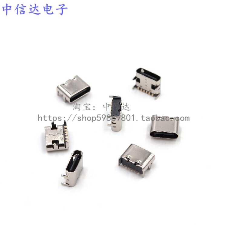 Type-C 6P Female Seat Patch USB-3.1 Socket Simple 4 Fixed Pin Micro Charging Port