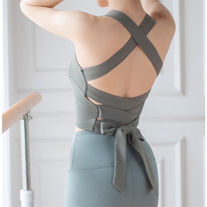 New high play speed dry strap Fitness Suit Sports Yoga Instructor Wear back underwear Shoulder Strap Chest Cushion Long Version Vest Woman