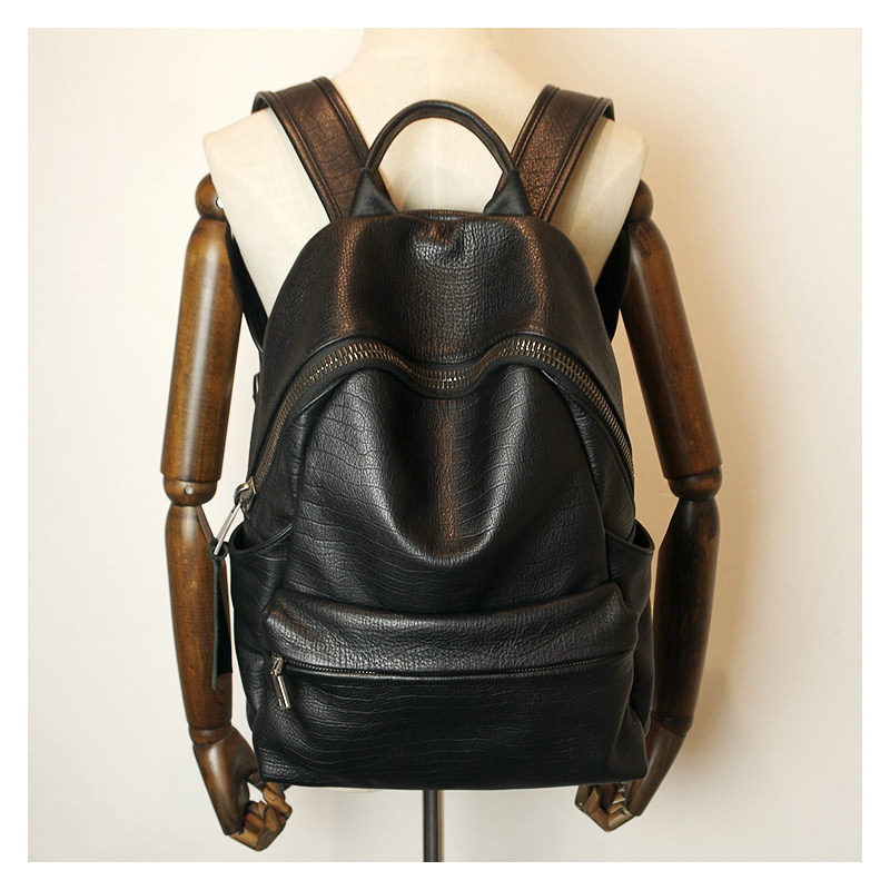 Retro leather men's backpack large-capacity soft leather fashion trend men's first layer cowhide computer backpack
