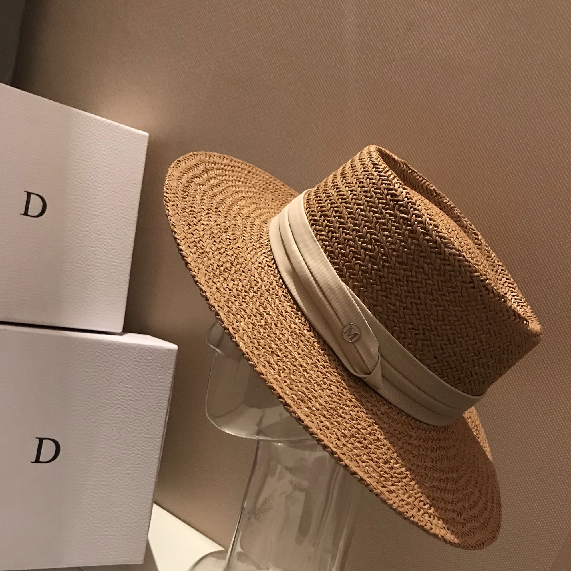 French 13c the same summer men and women hand-woven wide-brimmed flat top hat sunscreen vacation beach sun straw hat