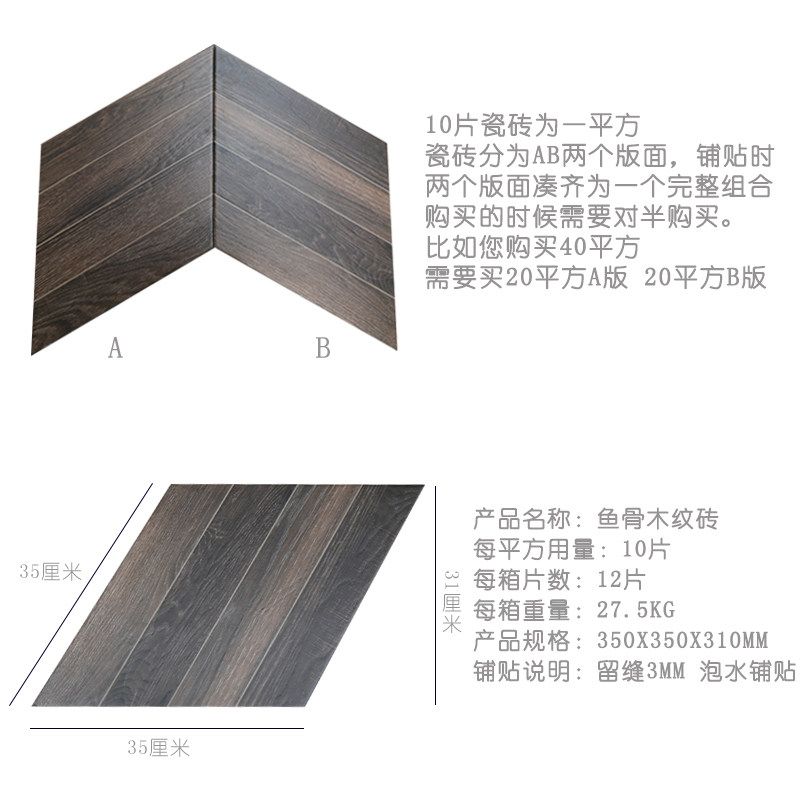 Nordic herringbone wood grain brick living room tile clothing restaurant dining room original wood color wood grain antique brick