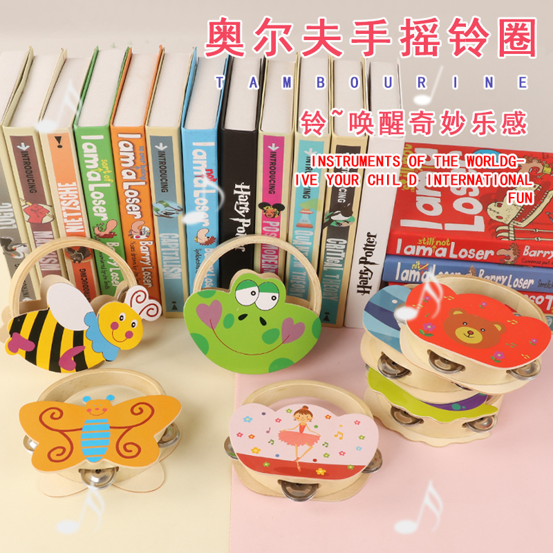 Cartoon Hand Rattle Bell Drum String Bell Children Nursery Bell Ring Percussion Instruments Hand Beat Drum Performance Hand Drummer Hand Drummer drummer