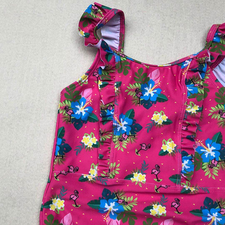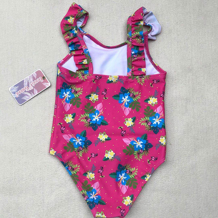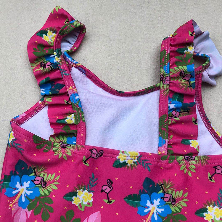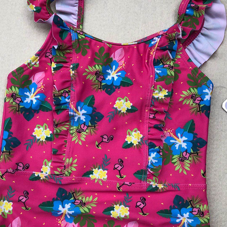 Export European and American women in great children's cute front middle shoulder strap floral lace dantop crane flower triangle basic even body swimsuit