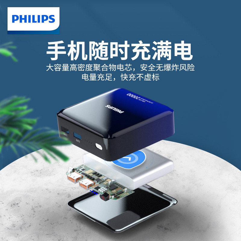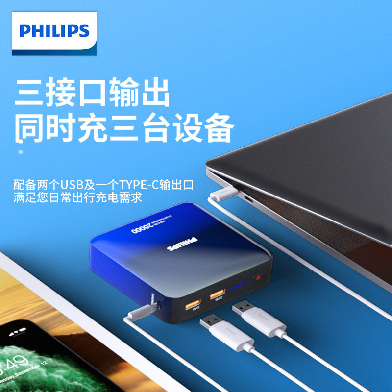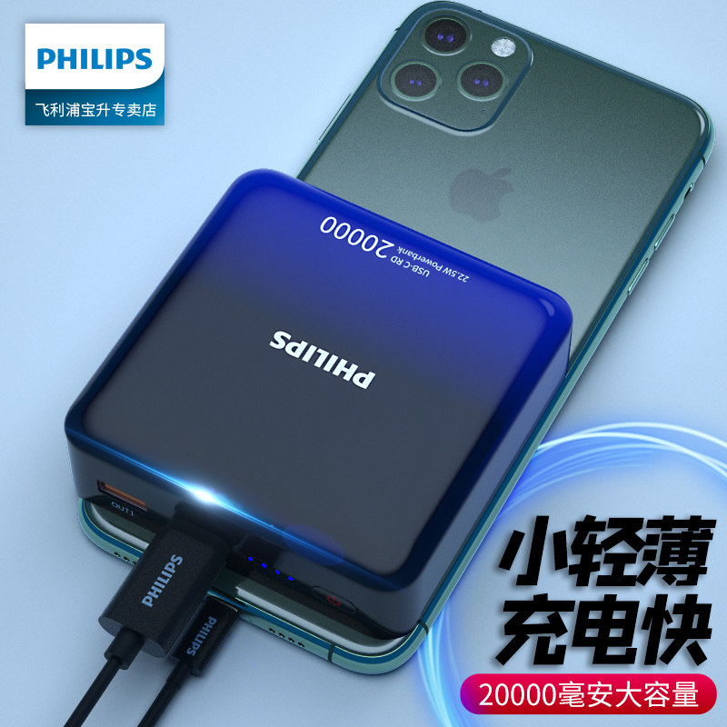 Gradient ash 20,000 mAh charging head Charging line Protective bag Blue and white gradient 20000mAh charging bag Charging head Charging line Protective bag