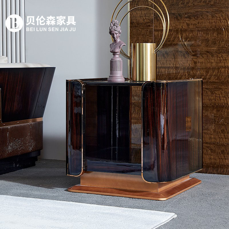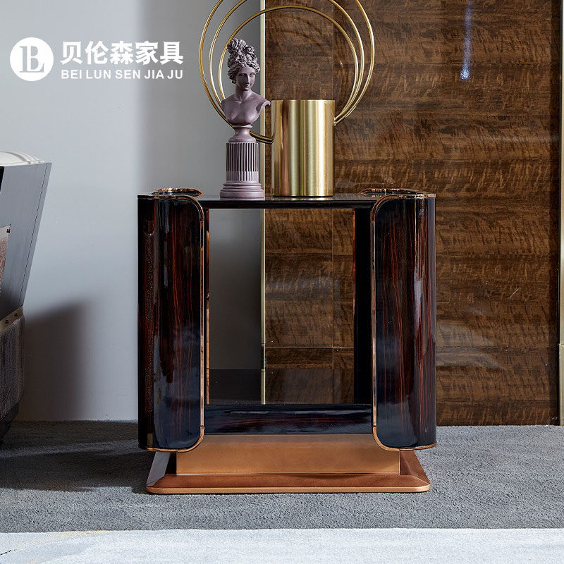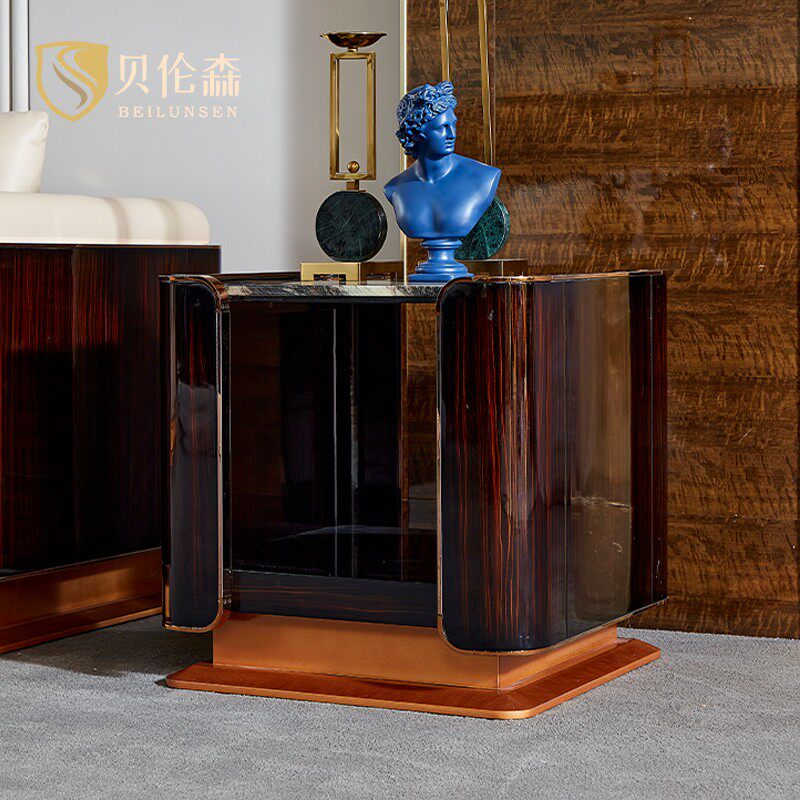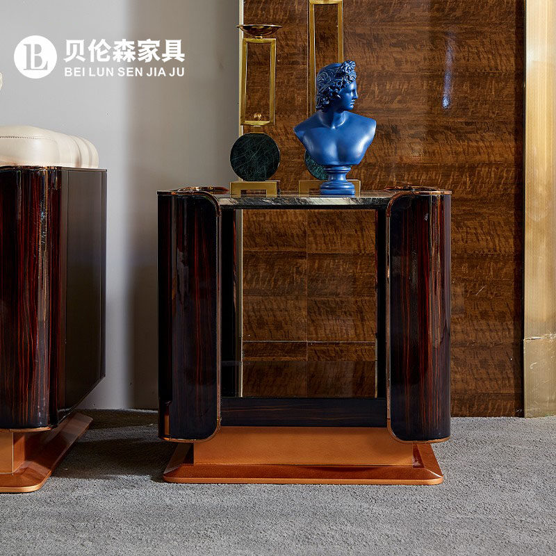 Italian style light luxury wood side table Italian solid wood marble hardware side table Italian solid wood wood surface hardware side table