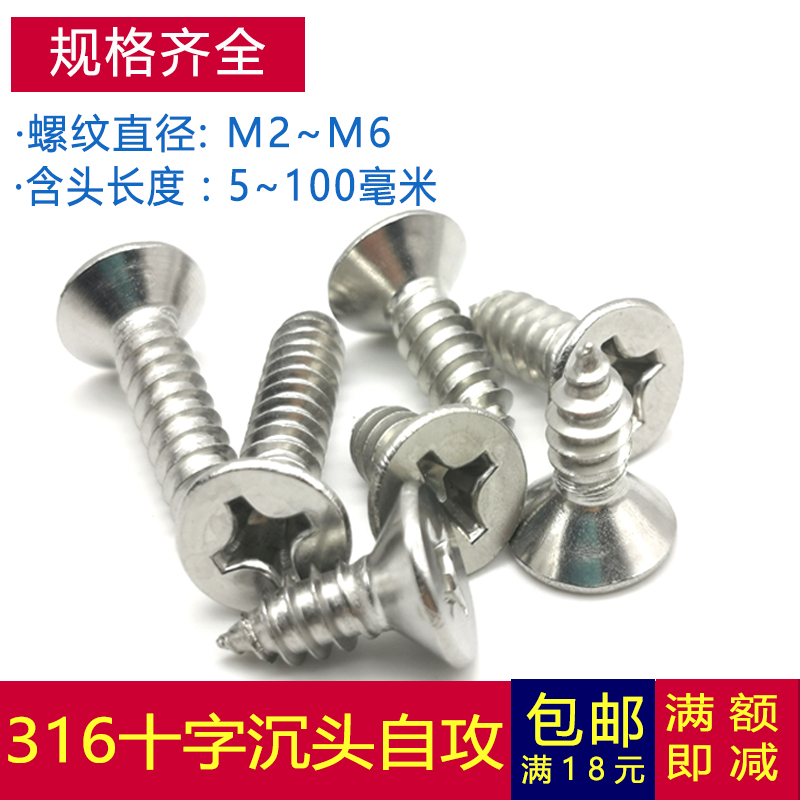 M4M5M6 ) ST flat wood screw 316 stainless steel self - tapping screw 819 sink head cross KA wooden teeth