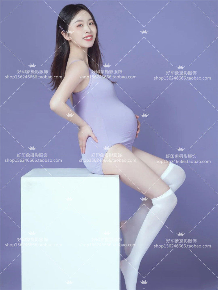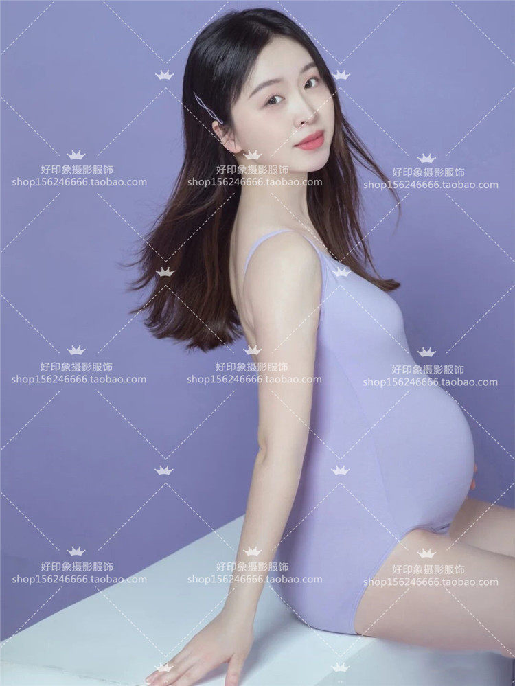 New Pregnant Women's Purple Co-fitting Fitment Building Fresh-written Theme Photography Pregnant Women Photography Clothing