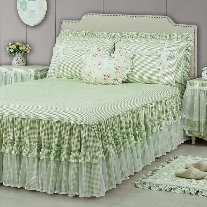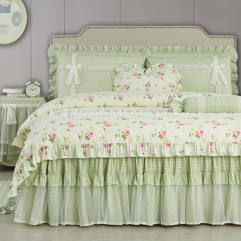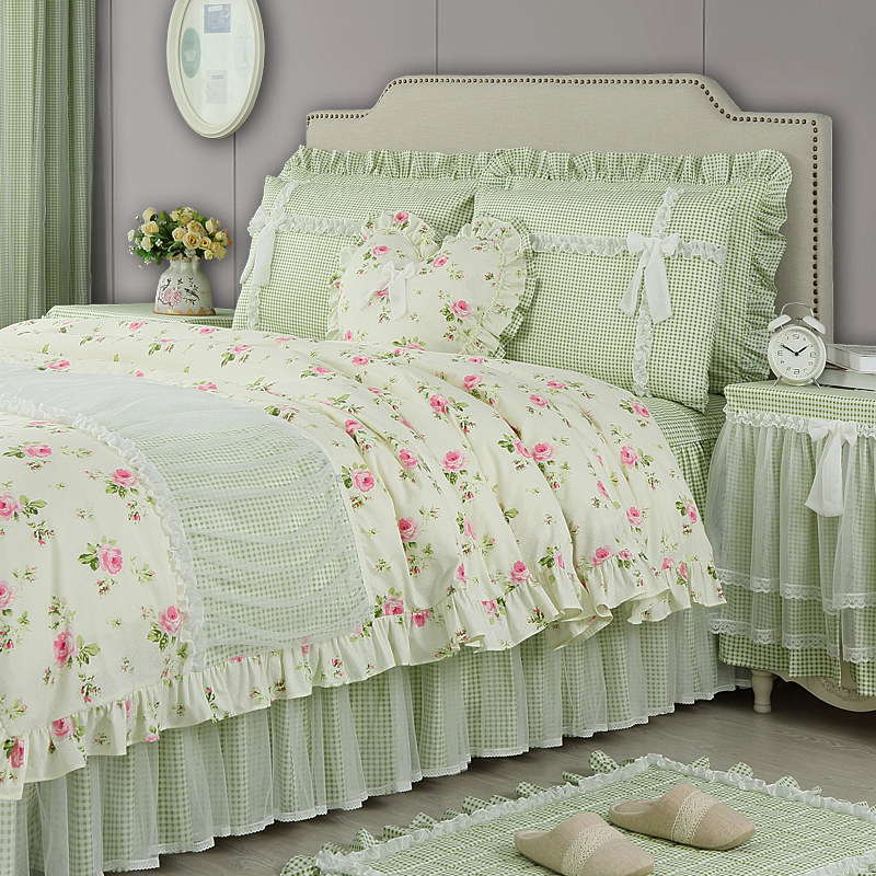 Clever life floral four-piece set pure cotton cotton small fresh green quilt cover bed skirt bed cover Child girl princess