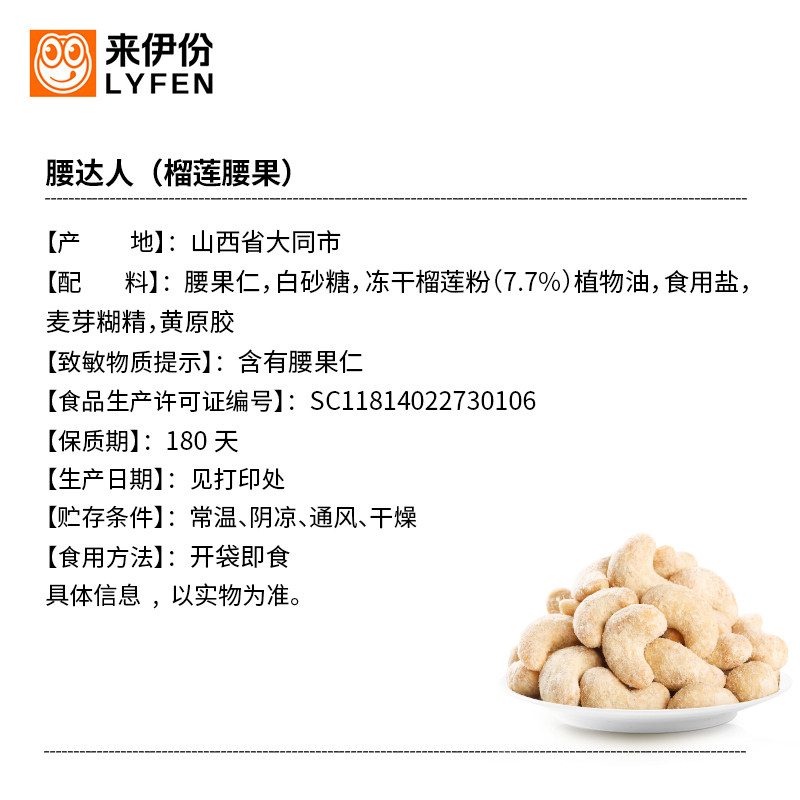 Full subtraction of Yifen Loin Daren Durian Cashew Nut 45g Nut Nori Snacks Specialty Dried Fruit Dried Goods Roasted Goods Bulk