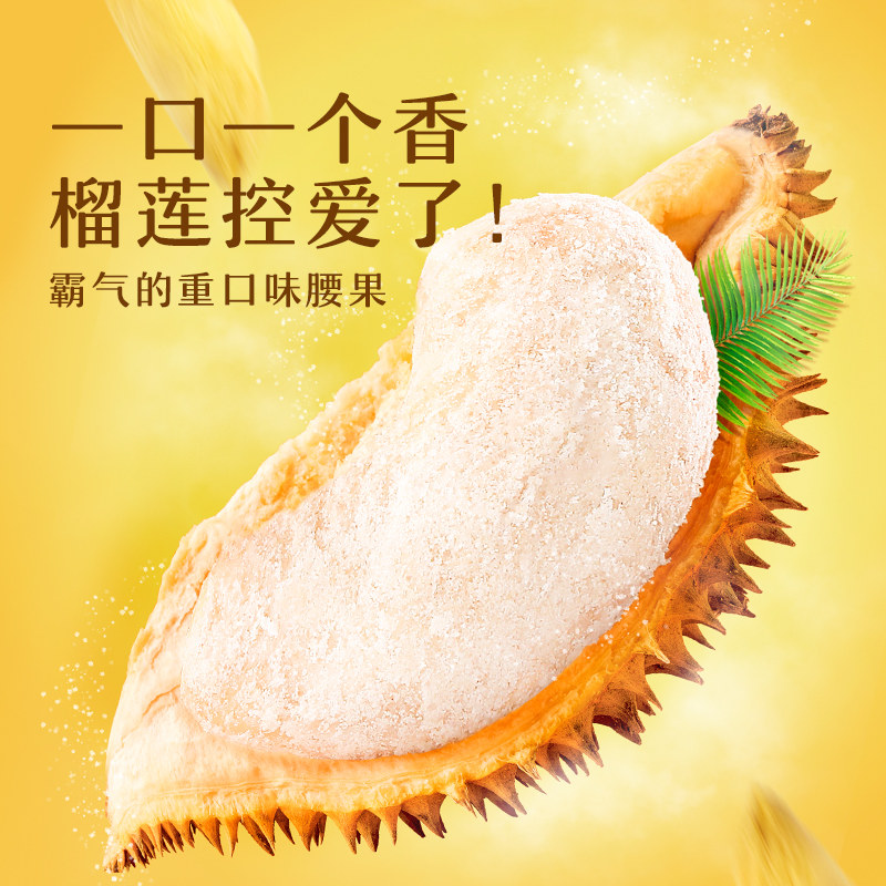 Durian flavored cashew nuts 45g seaweed flavored cashew nuts 45g charcoal-roasted cashew nuts 45g
