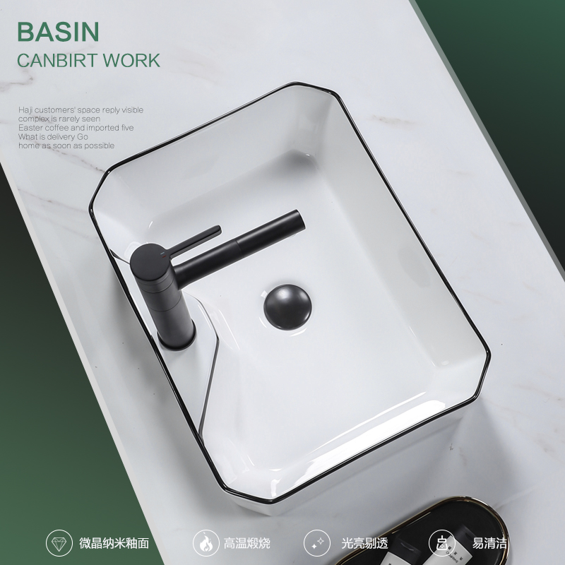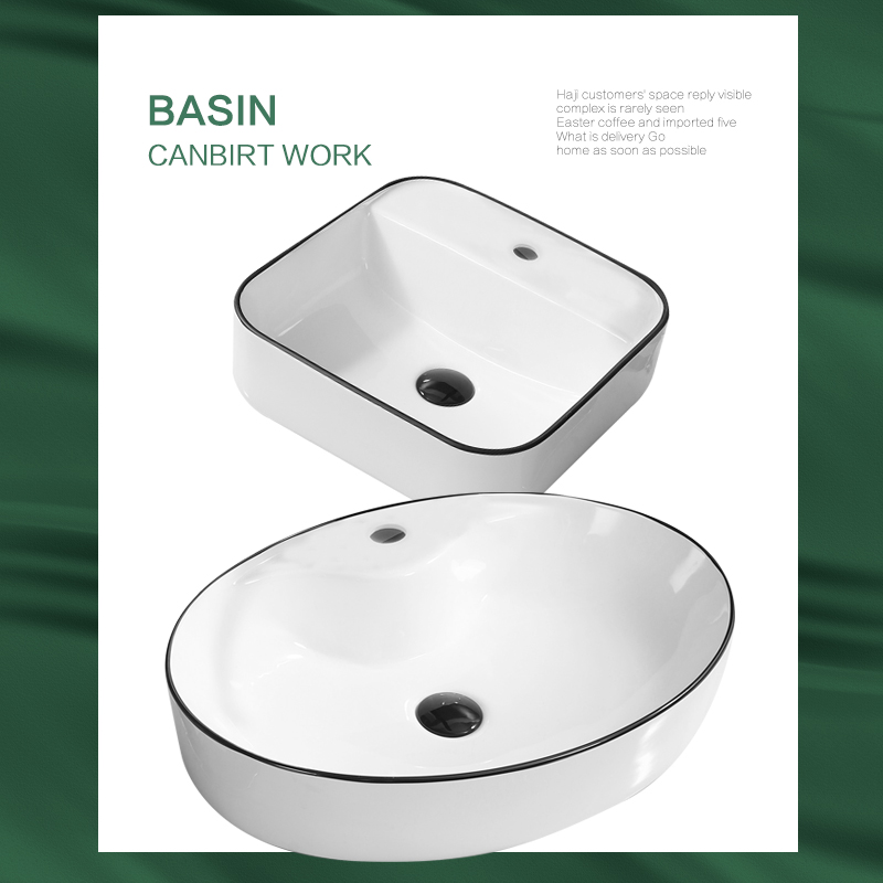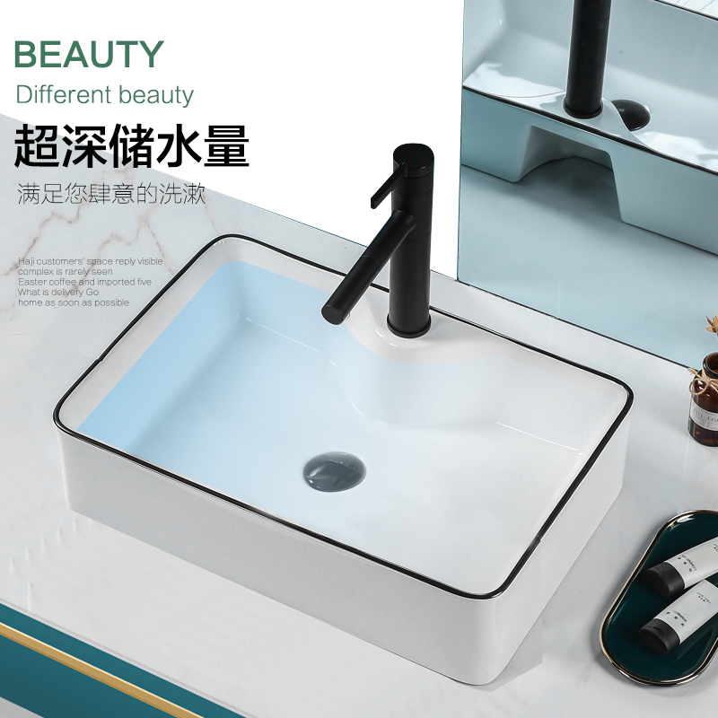 Terrace Basin Home Wash Basin Single Sink Ceramic Black Side With Tap Hole Washbasin Pool Makeup Room Balcony face basin