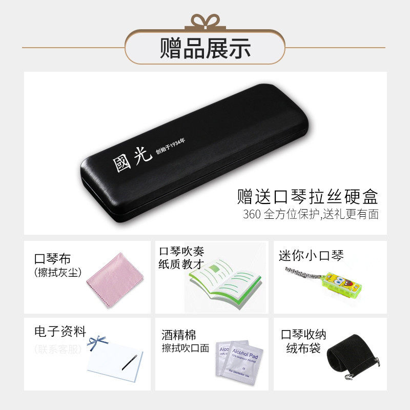 Bright black Guoguang 28-hole polyphonic harmonica (phonetic model) (National Dream) Classic silver Guoguang 28-hole polyphonic harmonica (including phonetic symbols)