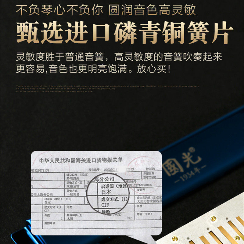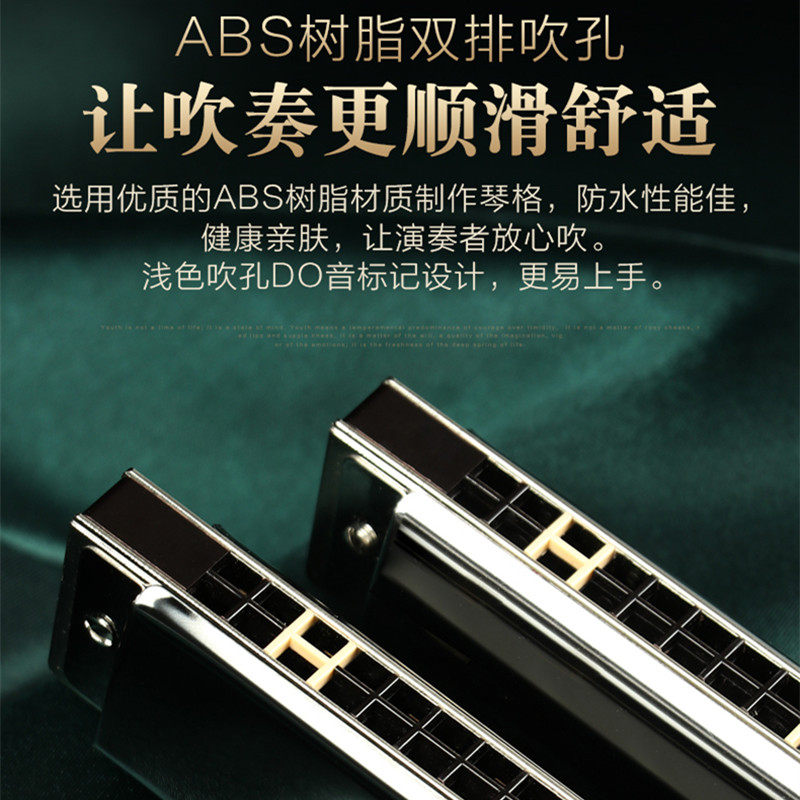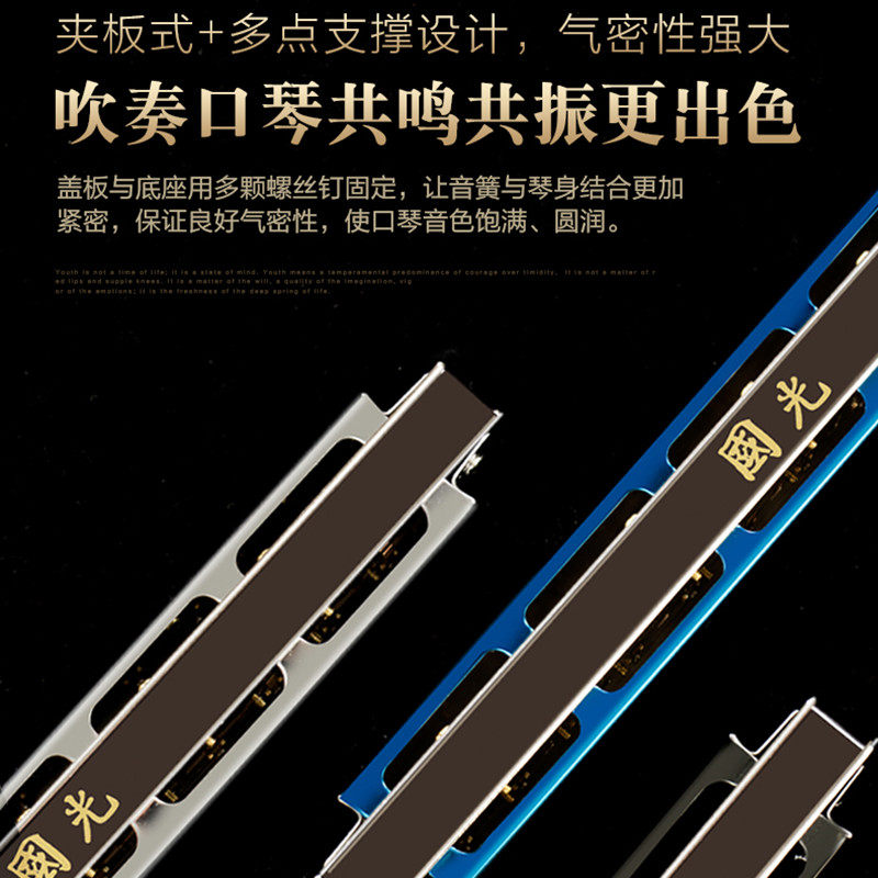 Shanghai old brand Guoguang harmonica professional performance level 28-hole repeat tone C-tune beginner students adult entry