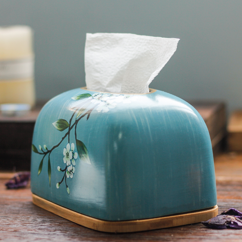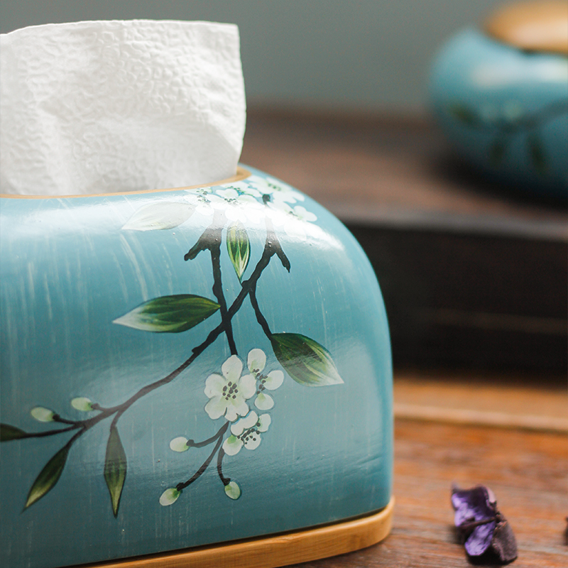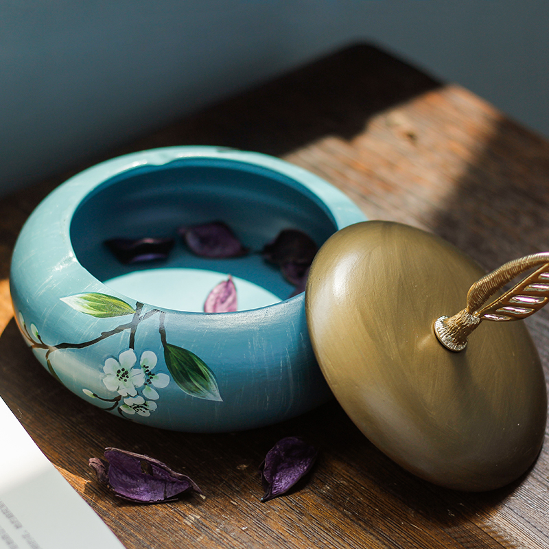 Creative ceramic decorative tissue box Household new Chinese living room coffee table Dining table Smoking paper box Decoration ashtray set