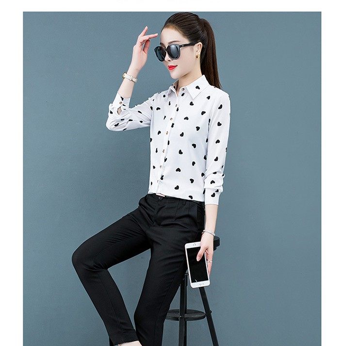 Printed white shirt woman 2022 new spring career fashion Korean version blouses big size for work interview job women