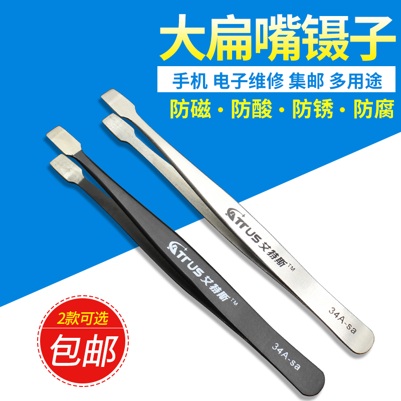 Large flat mouth tweezers Anti-static tweezers Stainless steel high-precision clips Stamp flat tweezers for mobile phone repair