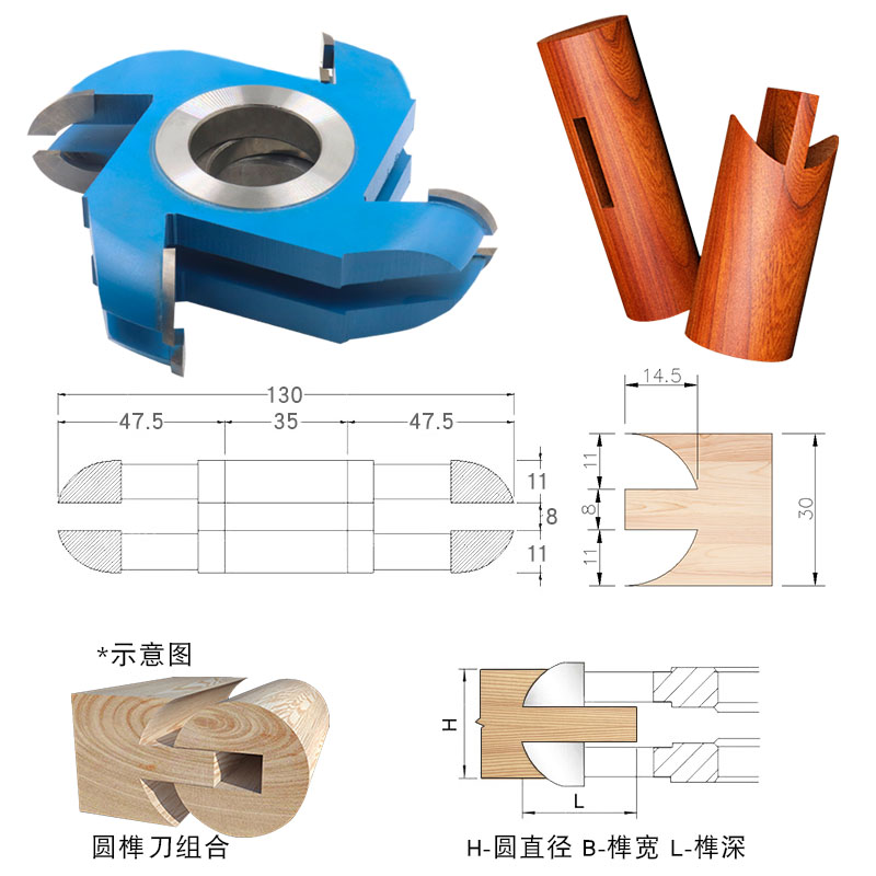 Woodworking tool bag tip Tenon knife Chinese style bogus Tenon male and female half round knife splicing knife alloy end mill