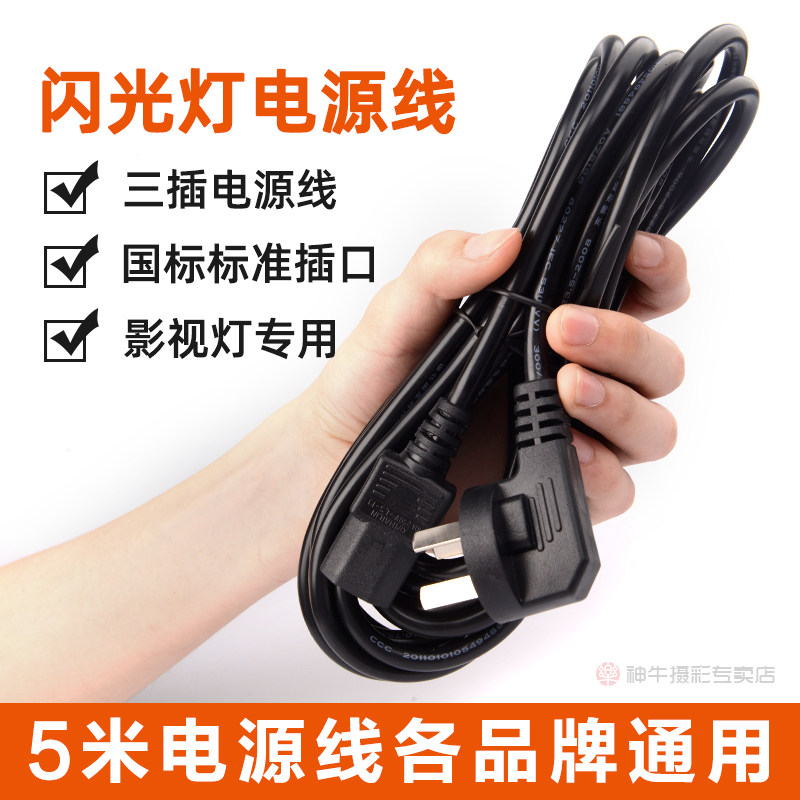 Sacred Cow 5 meters power cord photographic flash studio constant light fill light externalLy connected to the Golden Benez universal three-phase wire