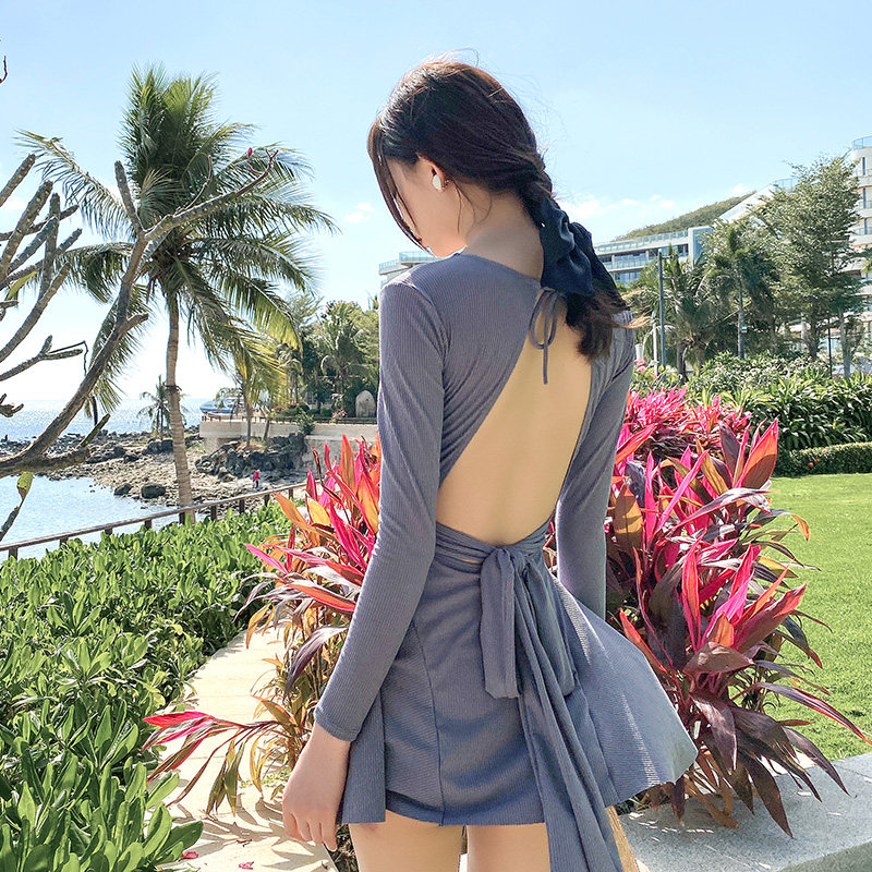Swimsuit female thin conservative Korea 2020 new in wind long sleeve student hot spring swimsuit fairy