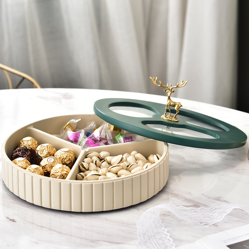 Tea table sitting room household creative INS receive sub-grid snack plate light luxury with cover multifunctional candy plate modern
