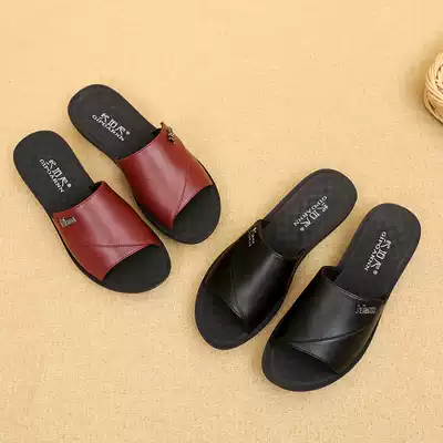 Mother slippers ladies summer wear middle-aged cool soft bottom non-slip leather middle-aged and elderly flat old grandmother