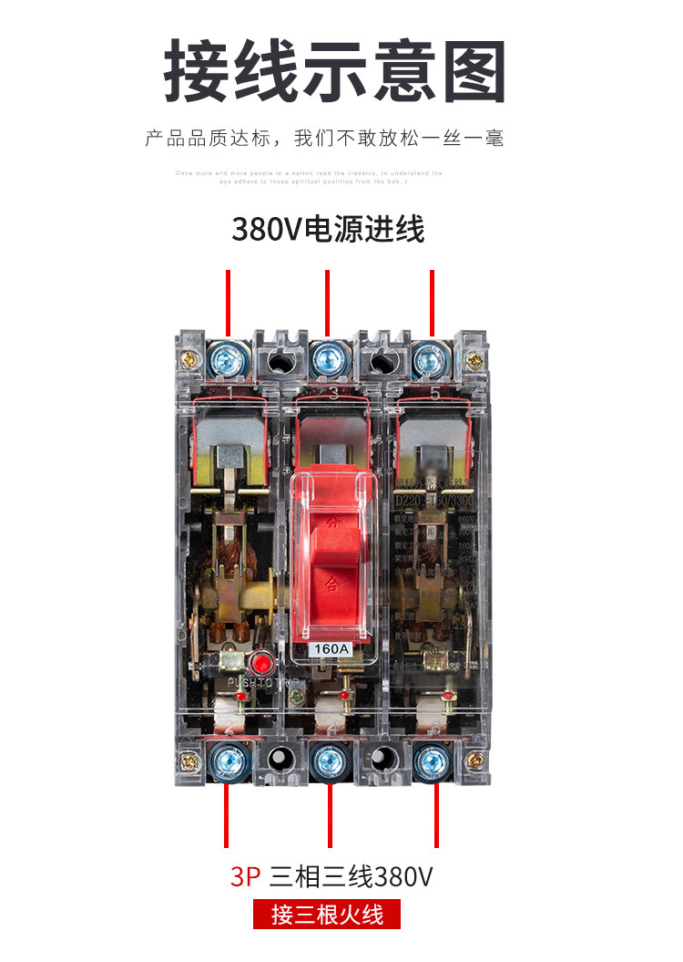 DZ20Y-100 3300380V plastic shell breaker three-phase three-wire air switch transparent housing 200A400A