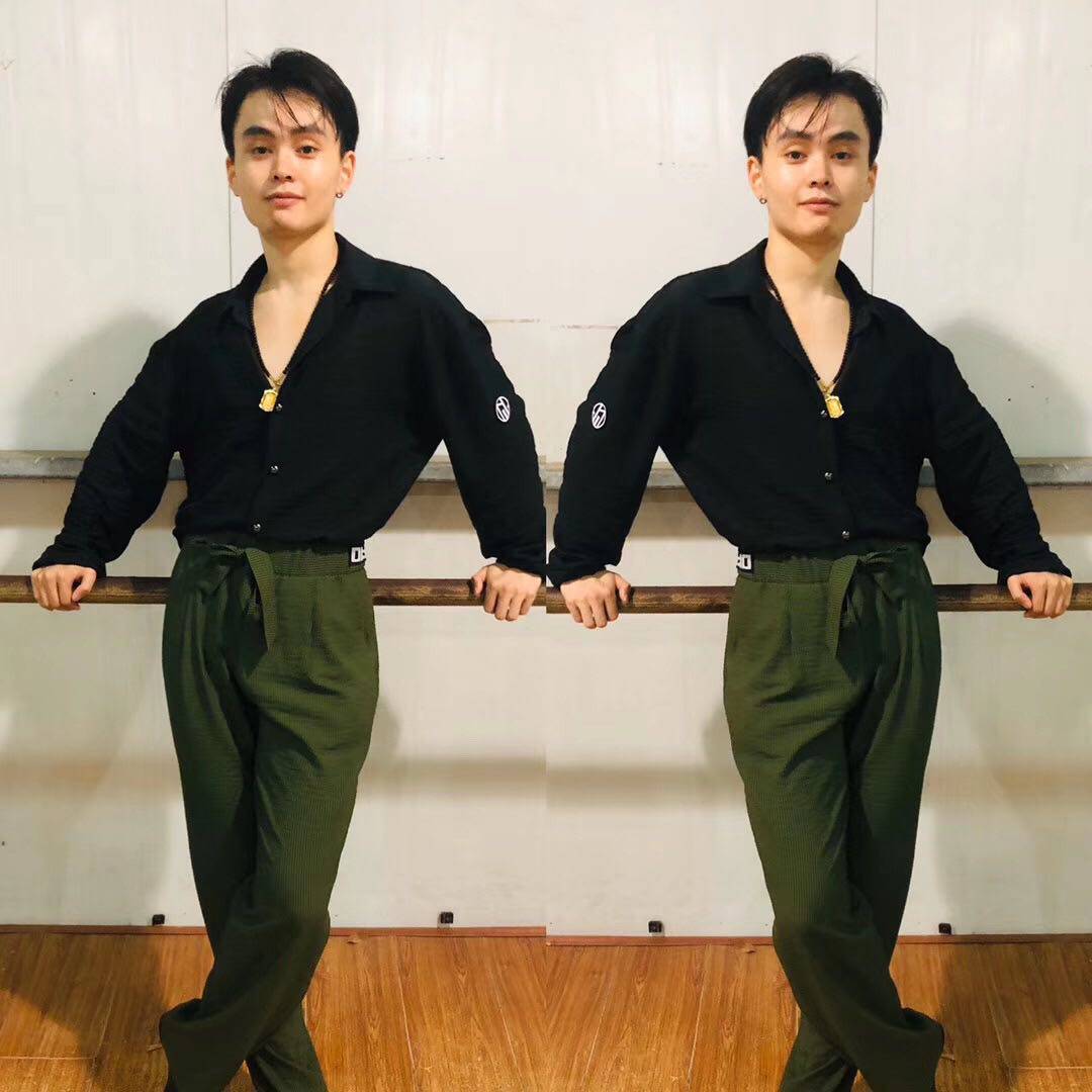 DUYQ 049 New Men's GB Dance Drawstring Practice Loose Shirt Professional Handsome Latin Dance Suit