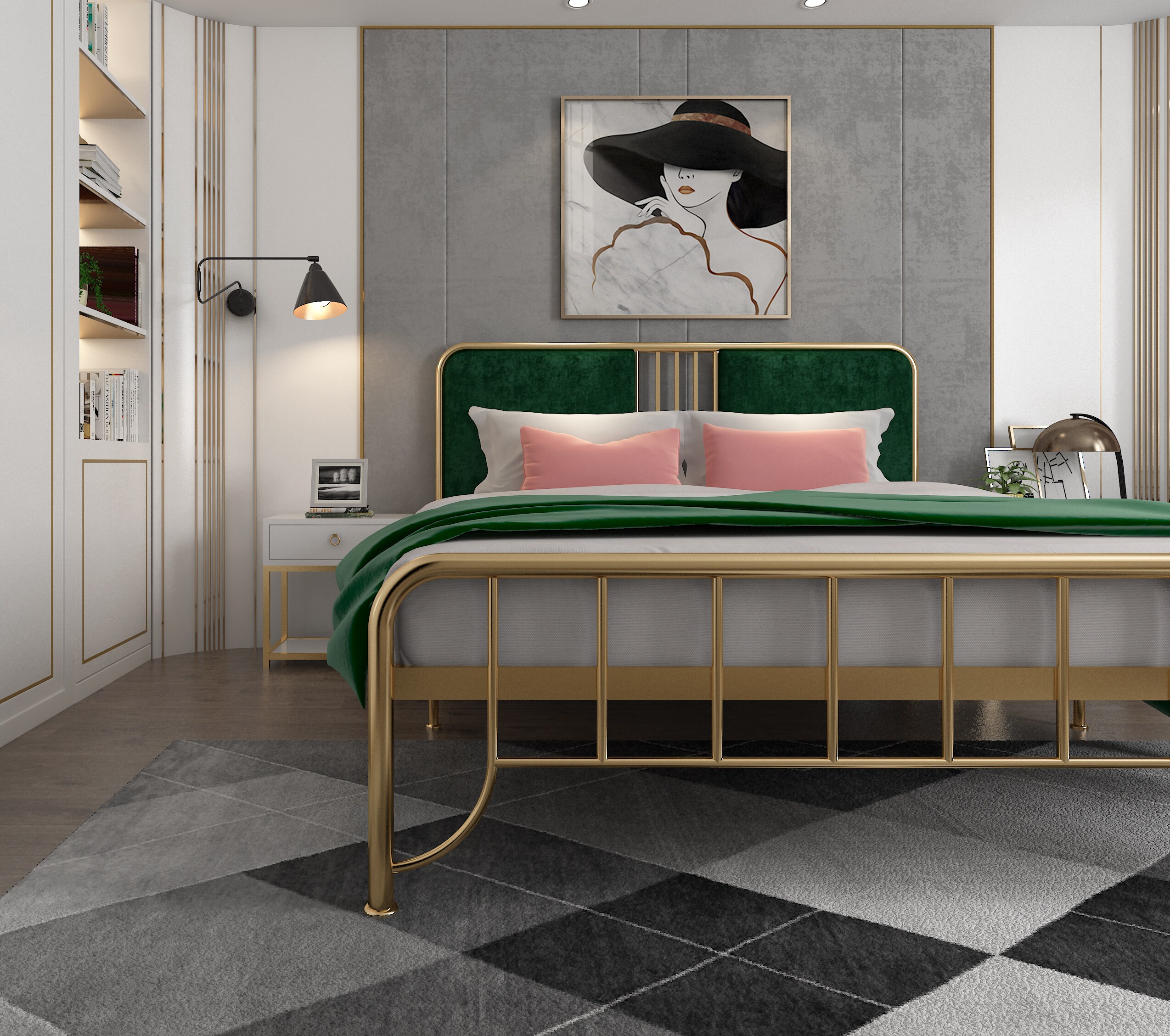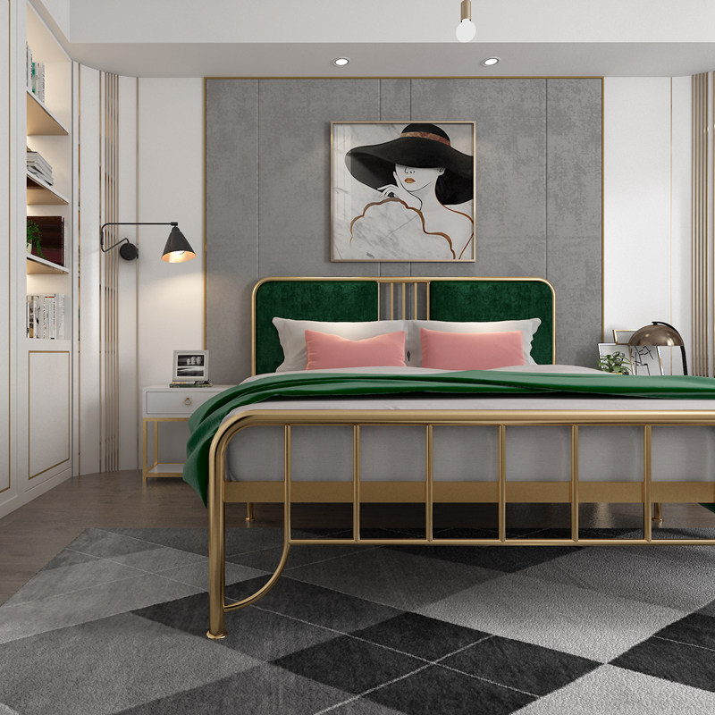 Nordic ins iron bed double bed golden iron bed 1 8 soft bed apartment simple single iron frame bed 1 5 meters