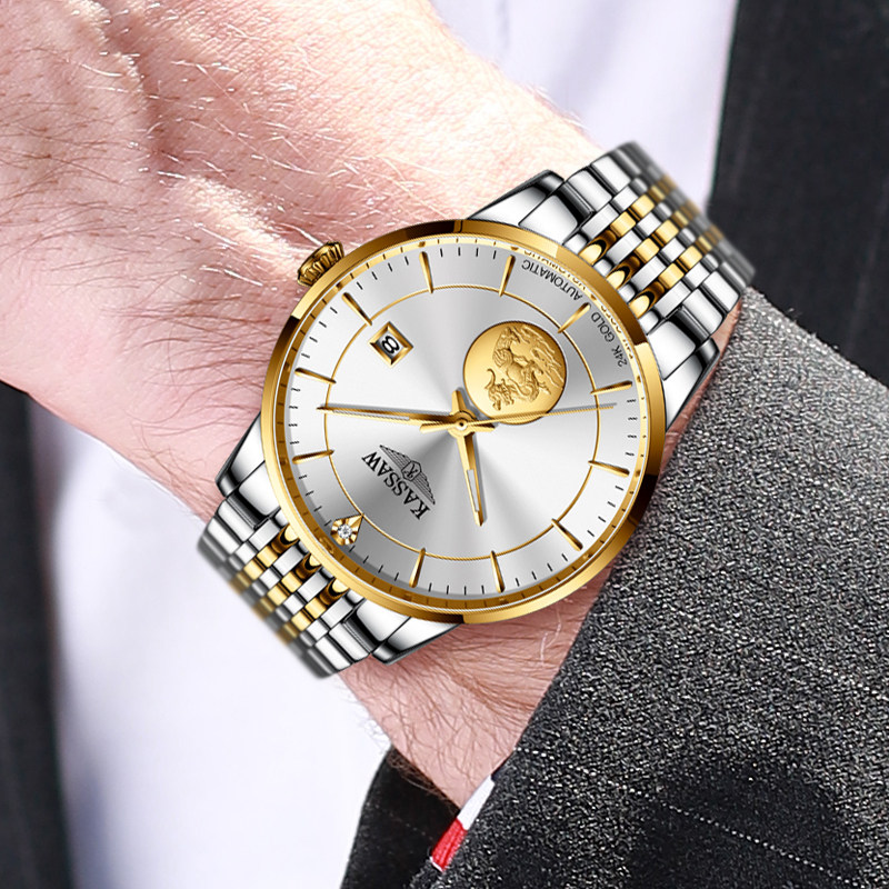 Cassoon Watch Men's Automatic Mechanical Watch Men Watch Business Fashion 24K Gold Gold Watch