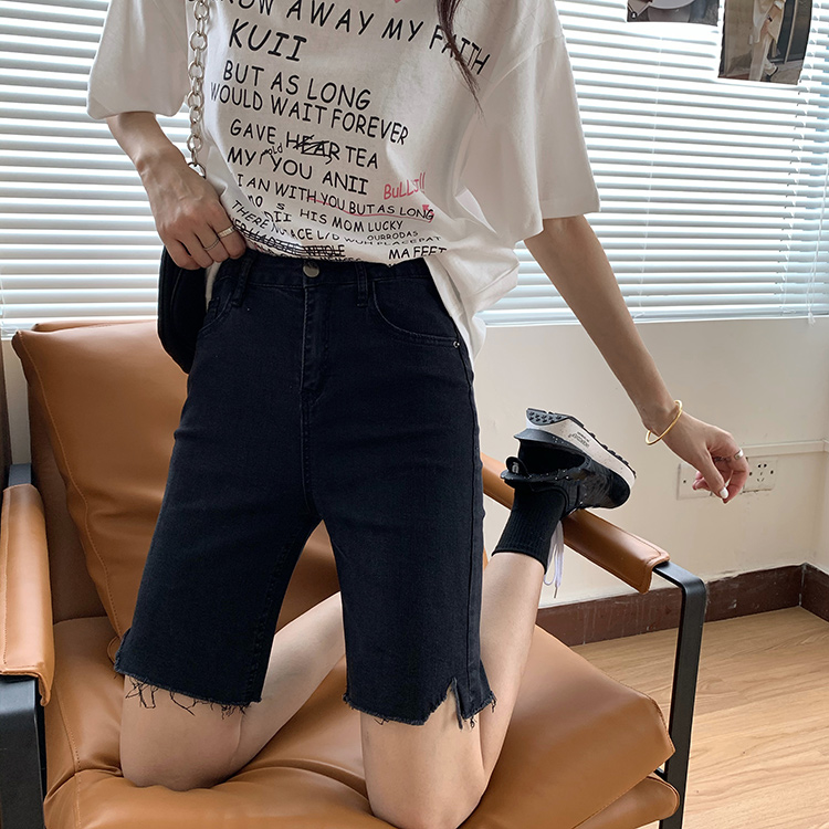 Cycling pants denim shorts summer thin outer wear five-point pants 2021 new small black middle pants tide