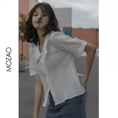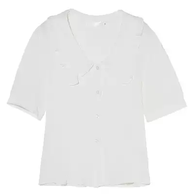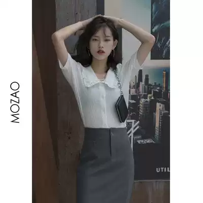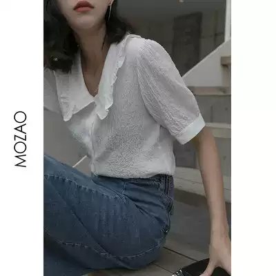 MZ doll collar chiffon shirt female summer 2021 new waist fashion temperament short sleeve foreign style gentle style lace top