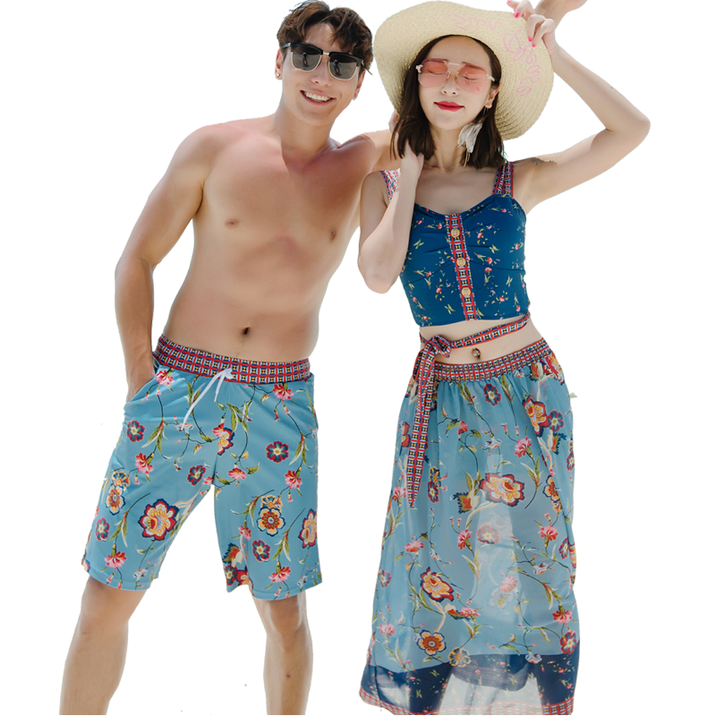 Bikini three-piece Thai beach honeymoon holiday couple set spa men's and women's beach pants swimming clothes