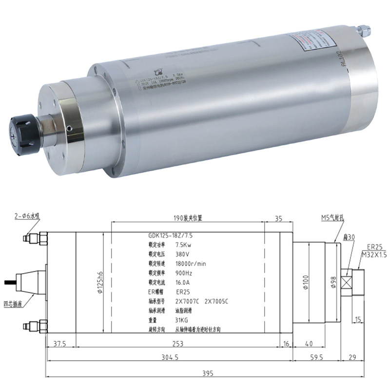 Hanqi Motor GDK125-18Z 7 5kw water-cooled constant torque metal mold stone special electric spindle