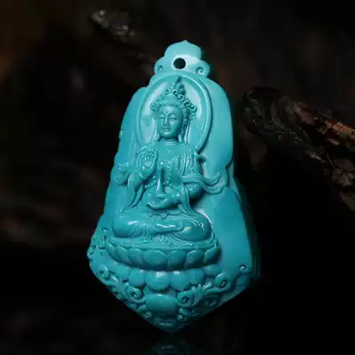 End Yi Hubei original mine turquoise Guanyin Das Seiko Seiko carving pendant handlebar Jinlongshan jade material for men and women