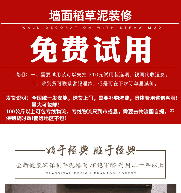 Interior wall short straw (1 kg) interior wall long straw (1 kg) exterior wall short straw (1 kg) exterior wall long straw (1 kg) primer (1 kg) exterior wall with face paint (1 kg) exterior wall