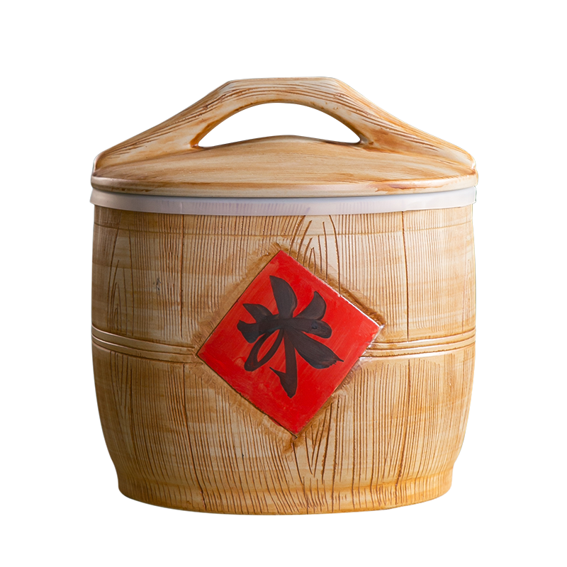 Jingdezhen Ceramic rice vat for home 10 catty 20 catty 30 Mount Imitation Solid Wood Flour Barrel Moistureproof and anti-bug sealed storage tank