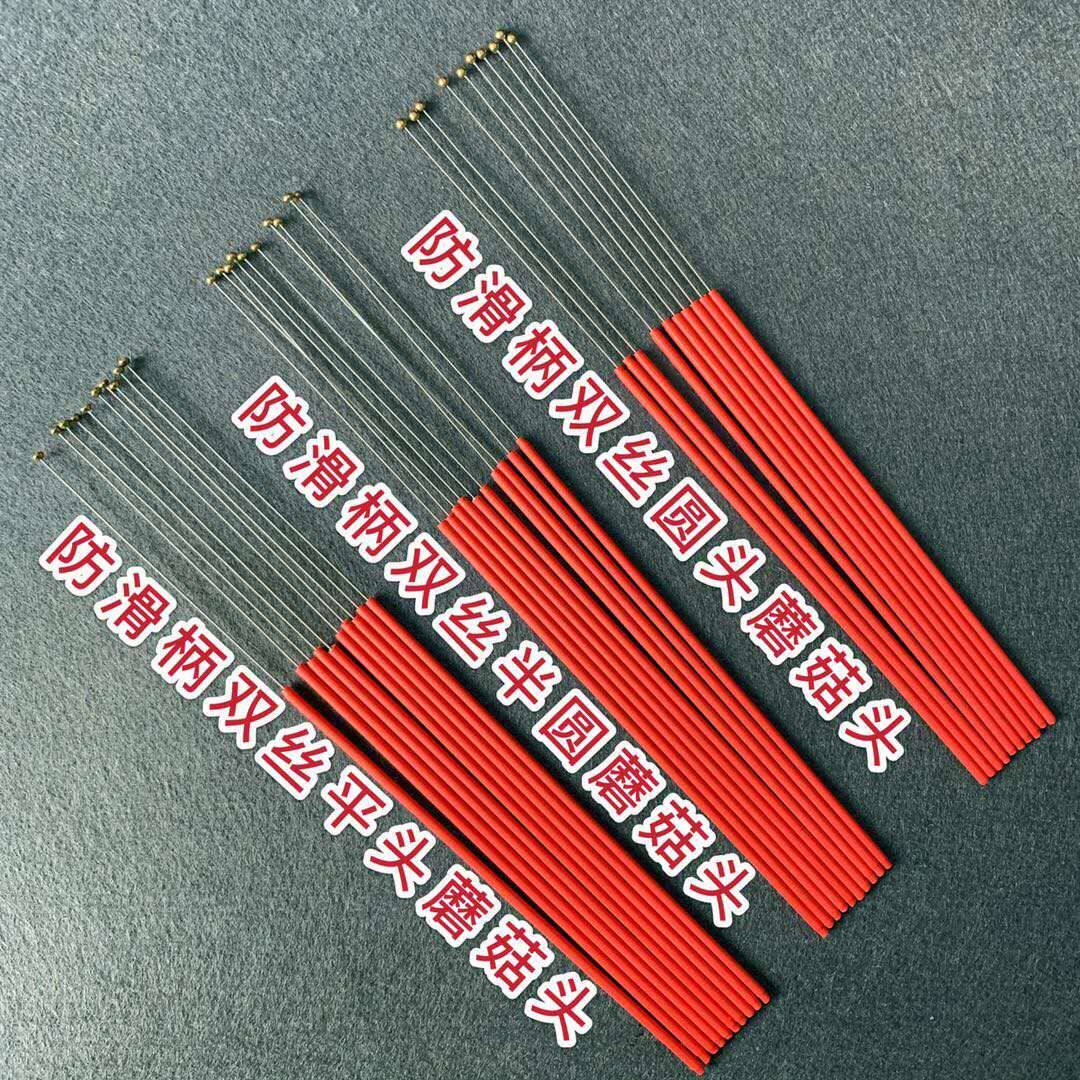 Stainless steel handle mushroom head (flat head) 1 stainless steel handle mushroom head (flat head) 2 non-slip blue handle mushroom head (semi-round head) 1 anti-slip blue handle mushroom head (semi-round head) 2 non-slip red handle double wire