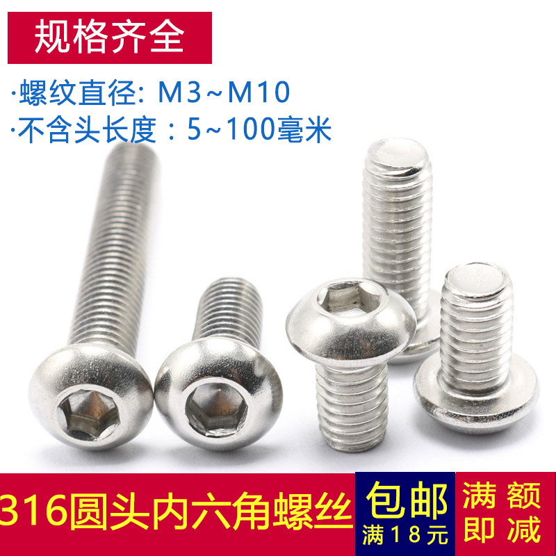 M6M8M10 stainless steel 316 mushroom head hexagonal screw disk umbrella type *16x35x60x100mm
