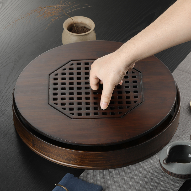 Divine bamboo dry tea tray household draining round tea table large water storage tea sea small simple kung fu tea set