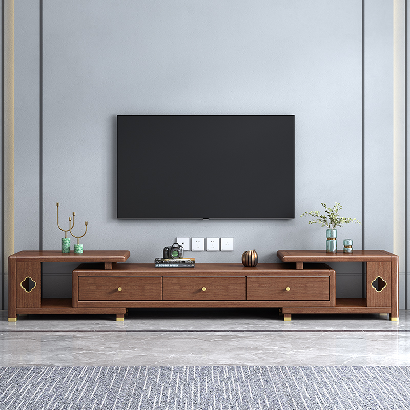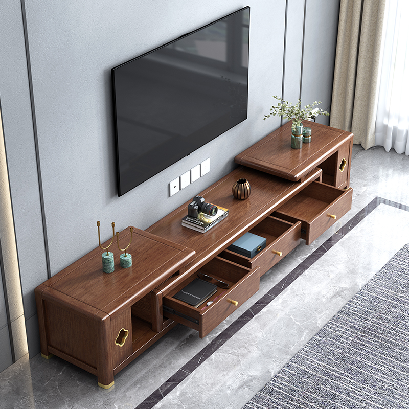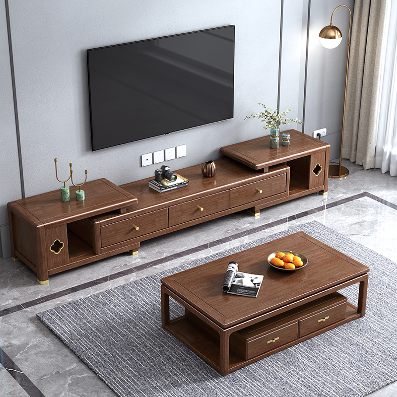 New Chinese style solid wood TV cabinet coffee table combination walnut living room furniture modern minimalist telescopic floor cabinet motor cabinet