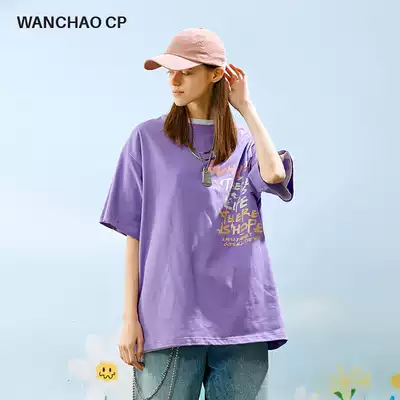 WANCHAO CP summer dress trend smiley face T-shirt national tide girl short sleeve oversize loose couple half sleeve