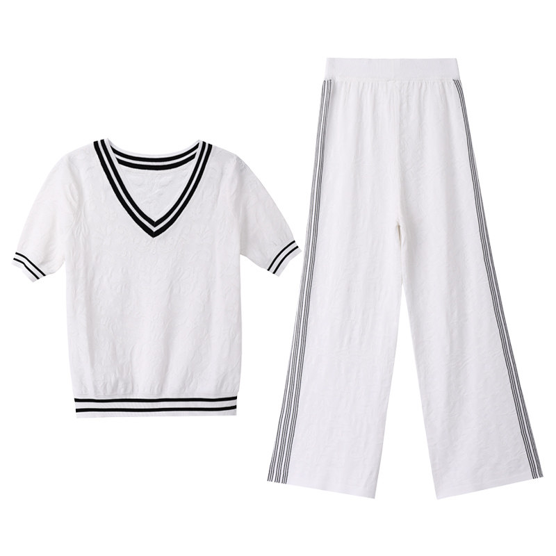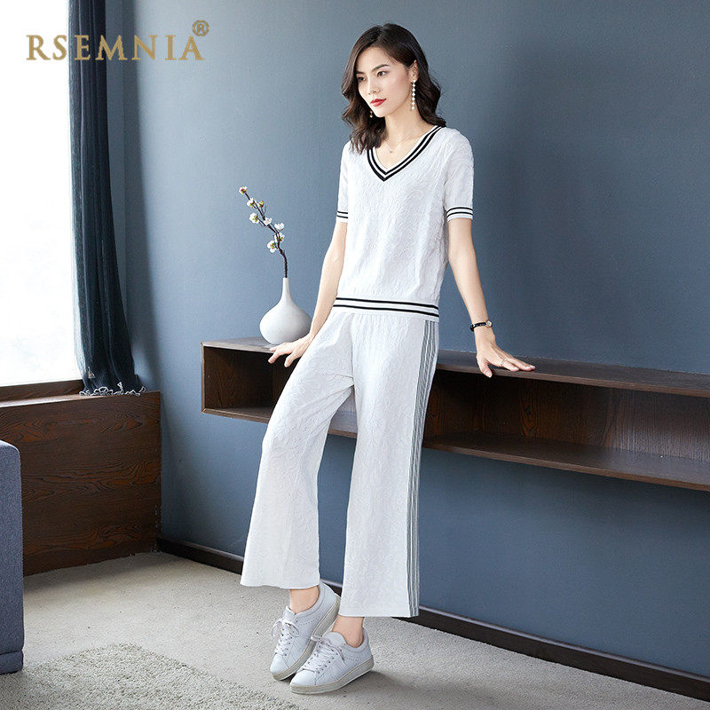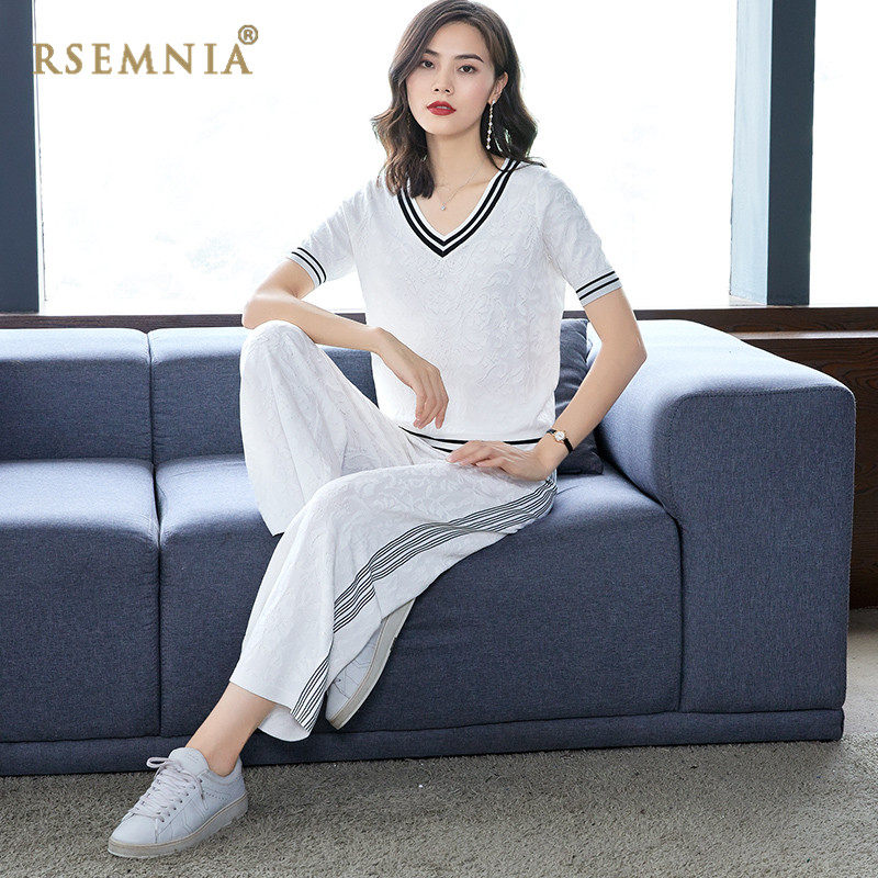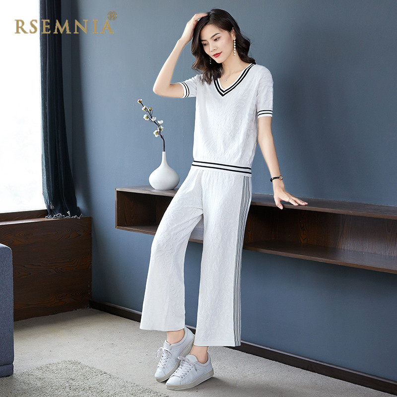 Rsemnia Day Series New White Wide Pants Suit Woman Short Sleeve Loose Ice Silk Sports Casual Two-piece Tide