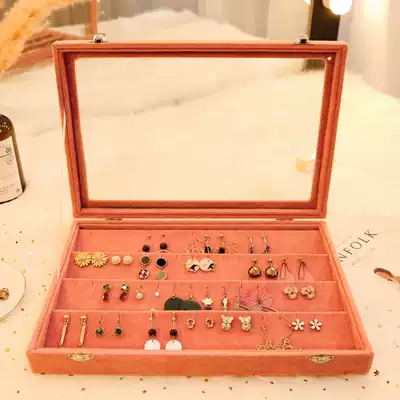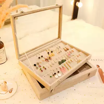 Gray 100-digit ear ring box (can put 50 pairs of store manager recommended loss Special) (light luxury Green) 100 bit ear ring box (can hold 50 pairs of earrings) large gray ice velvet earrings jewelry
