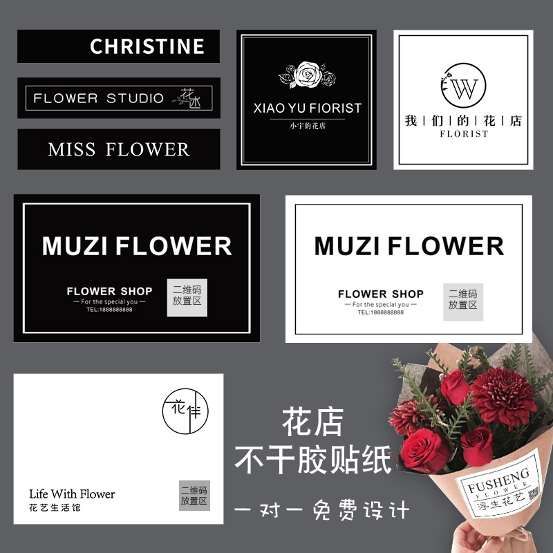 Florist self-adhesive logo sticker custom cake advertising pvc waterproof flower label custom WeChat 2D code bouquet gilding sticker baking sealing floral art free design printing trademark