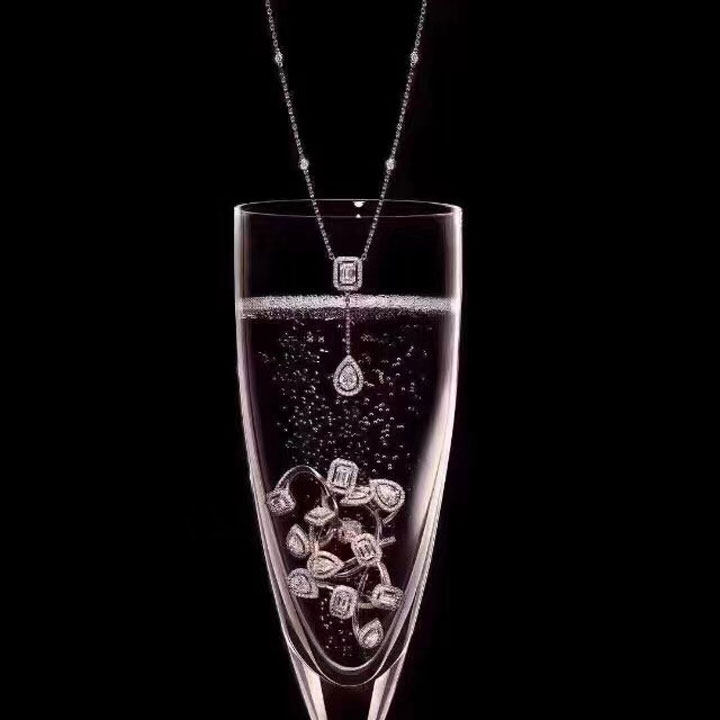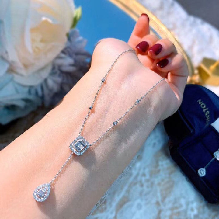 Jun Huang Jewelry 18K Gold Ladder Square Rock Candy Drop Diamond Necklace femininity exquisite 50 points collarbone chain