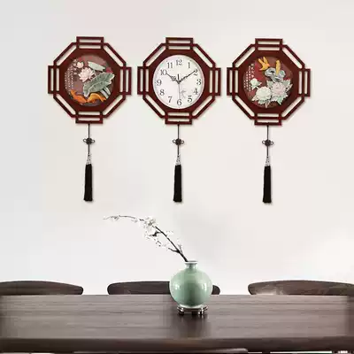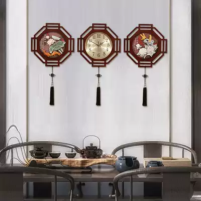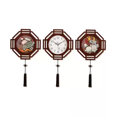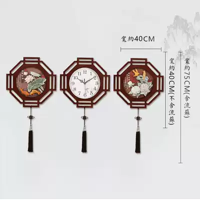 New Chinese wall clock Chinese style Sanlian Fu Jade carving creative decoration watch home living room fashion mute wall clock