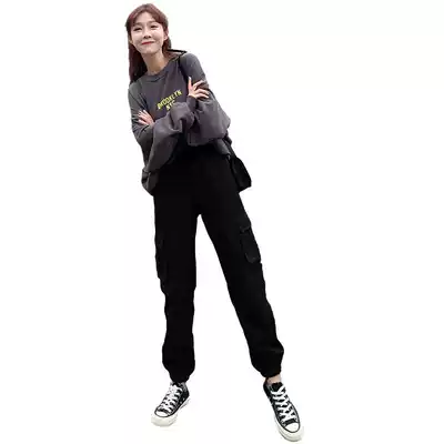 Overalls, women's pants, small autumn clothes, high collocation, thin spring and autumn 2021 new sports drawstring pants, summer
