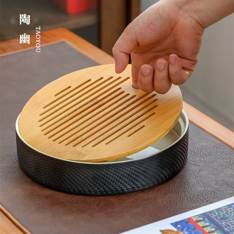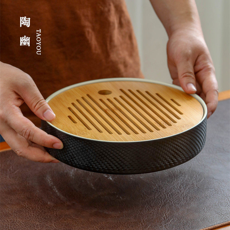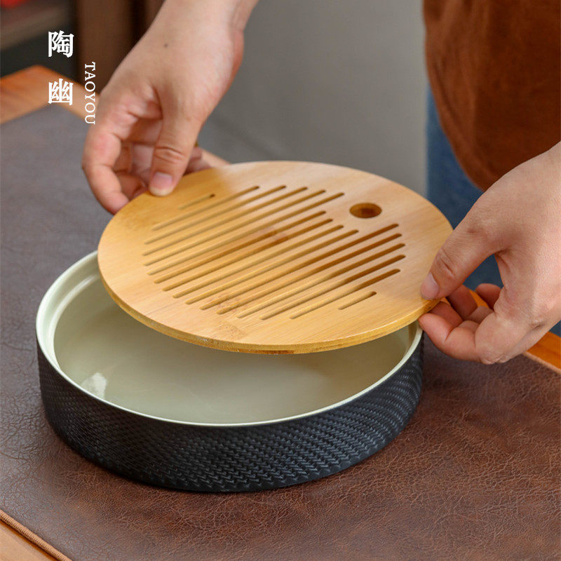 Taoyou ceramic tea tray tea sea Japanese-style small black rough pottery tea table tea set pot support pot for water storage household dry foam plate